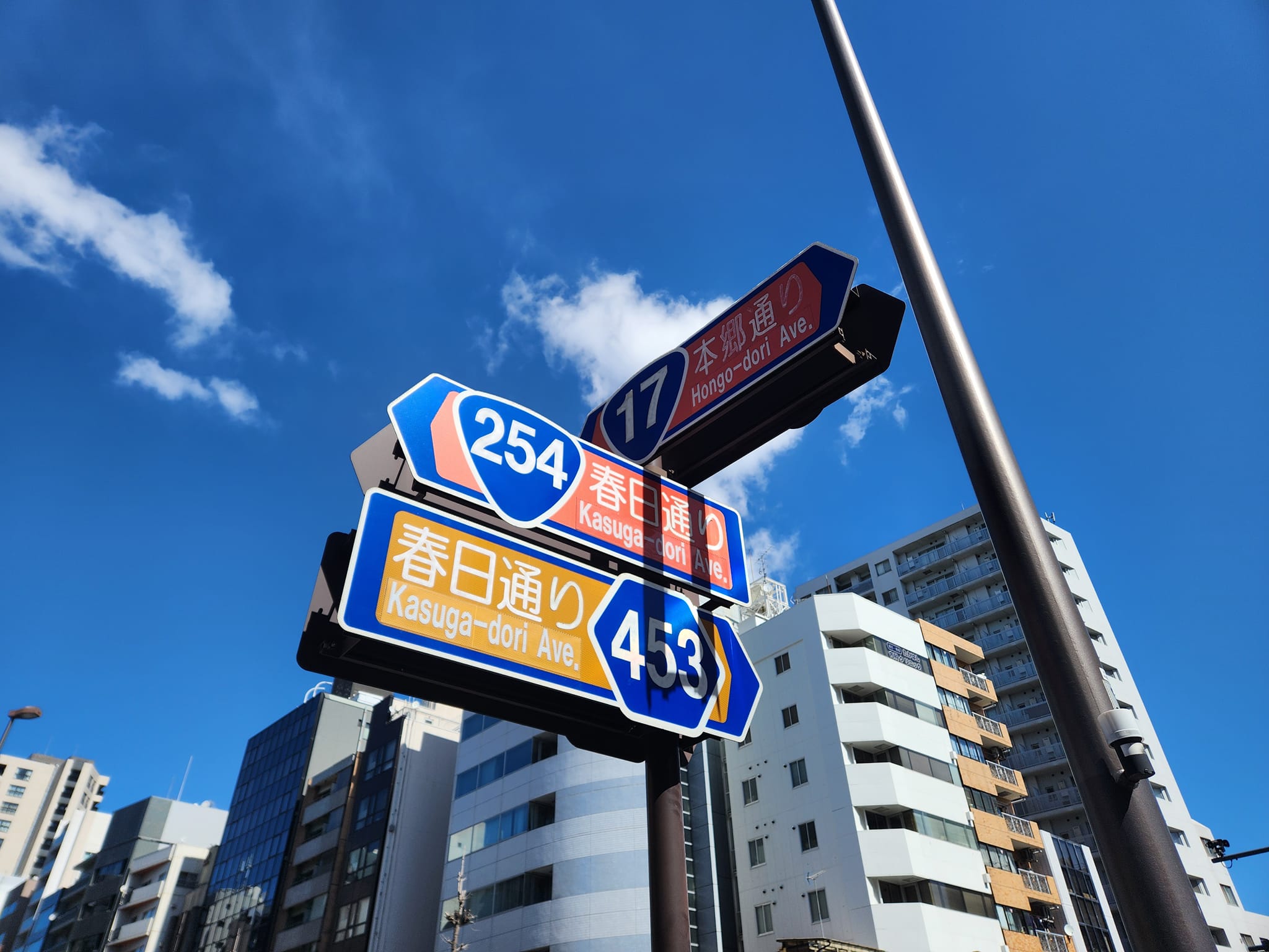 本郷通り(国道17号:中山道)と春日通り(国道254号:川越街道)の交差。
