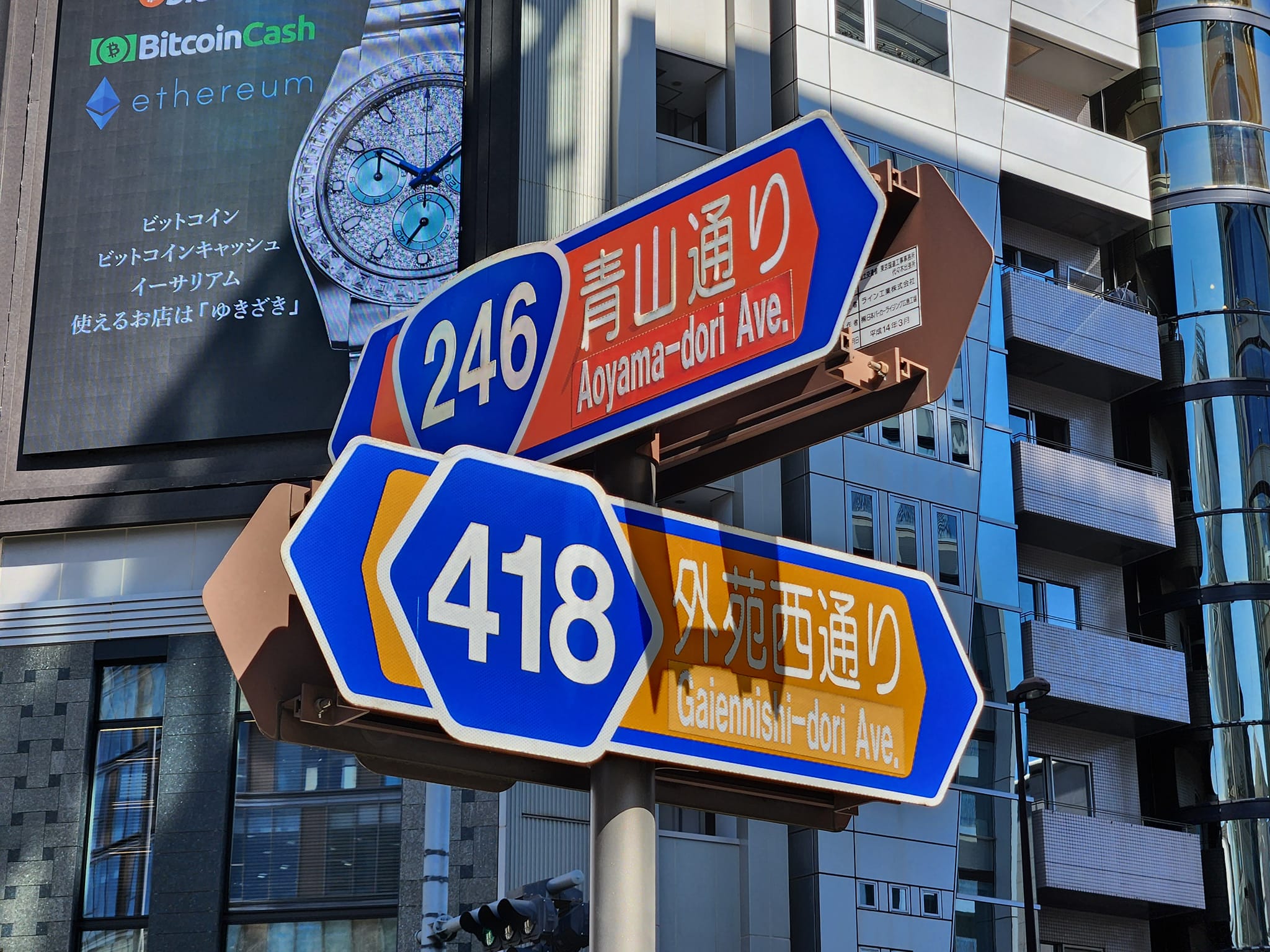 青山通り(国道246号)と外苑西通り(都道418号)の交差。都会です!